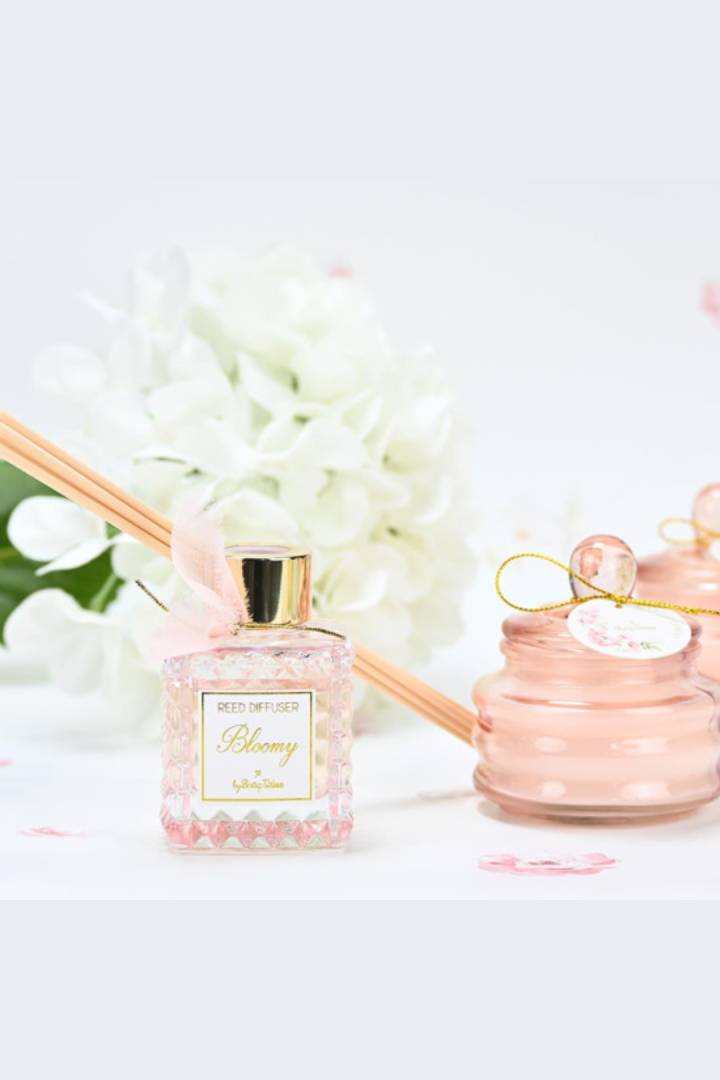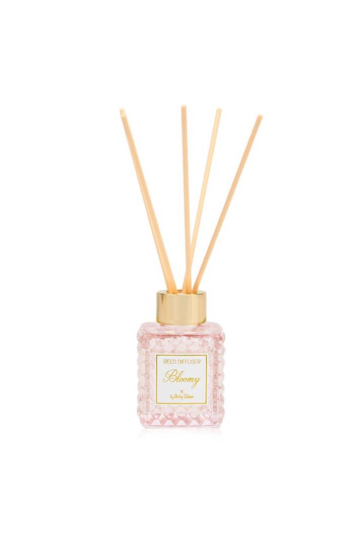 Το αρωματικό χώρου bloomy της SoapTales είναι μια εκλεπτυσμένη πρόταση που συνδυάζει  καθαρότητα, απαλότητα και διακριτική πολυτέλεια. Το γυάλινο μπουκάλι με ανάγλυφη  υφή και χρυσό καπάκι χαρίζει μια κομψή παρουσία, ιδανική για elegant διακόσμηση  αλλά και για ιδιαίτερες περιστάσεις.