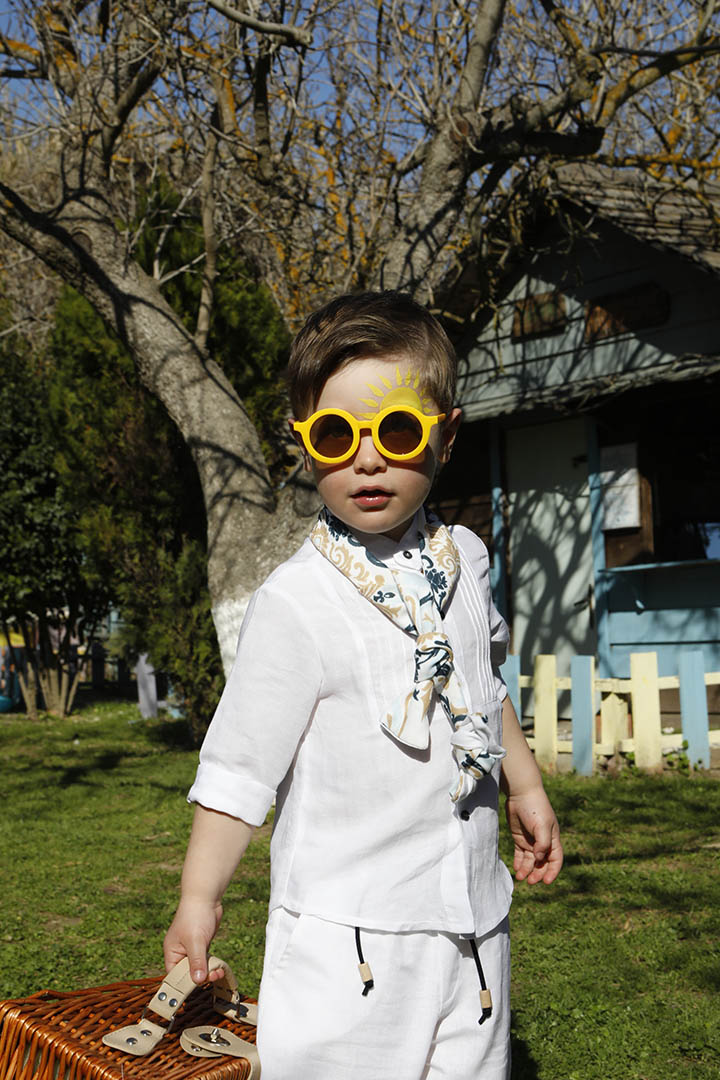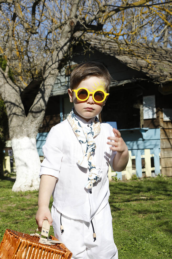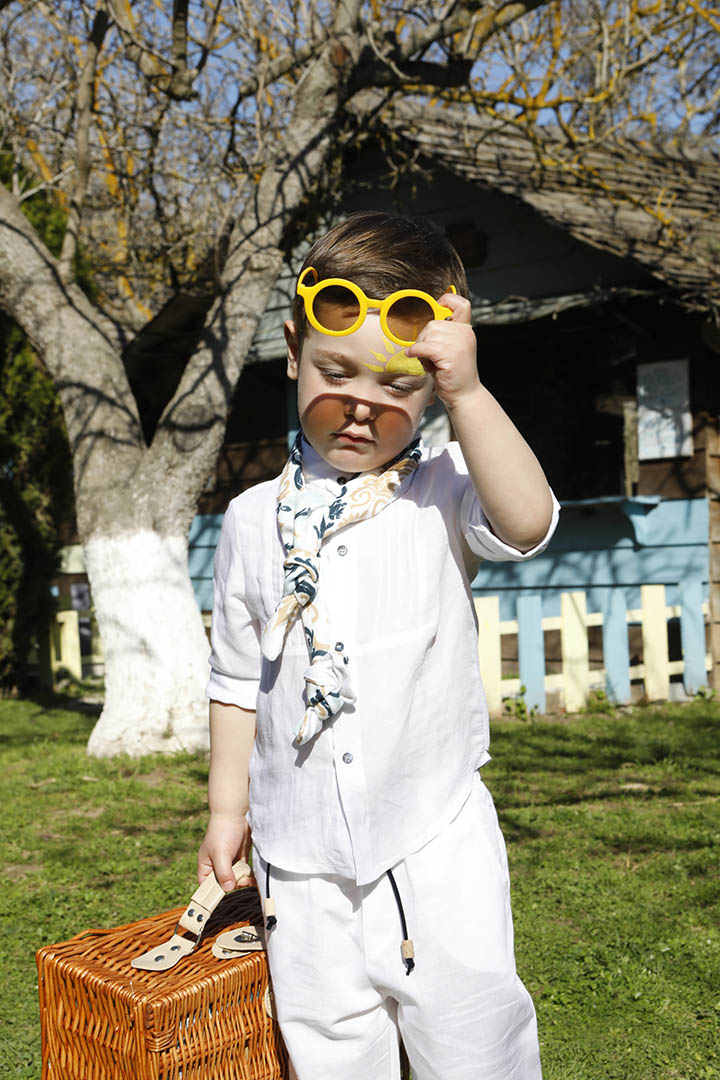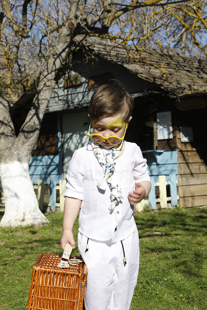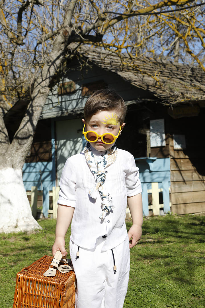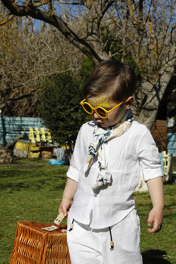 Ο Tony είναι ένα ολόλευκο σετ βάπτισης με μπλε και σιέλ λεπτομέρειες. Πουκάμισο με όμορφα νερβίρ από cotton γκοφρέ ύφασμα Γαλλίας. Παντελόνι λευκό 100% λινό. Δερμάτινη μπλε ζώνη. Φουλάρι σε χρωματισμό λευκό, μπεζ, σιέλ και μπλε από soft cotton 100%. Καπέλο λευκό με τρέσσα από φουλάρι.