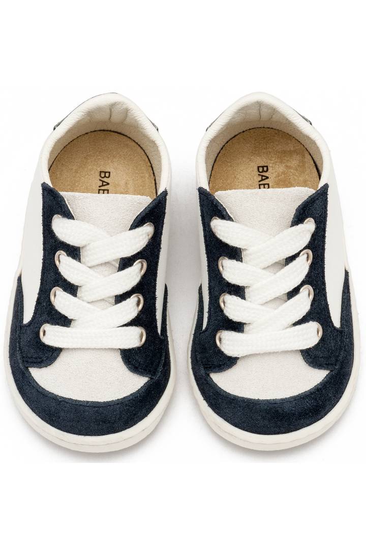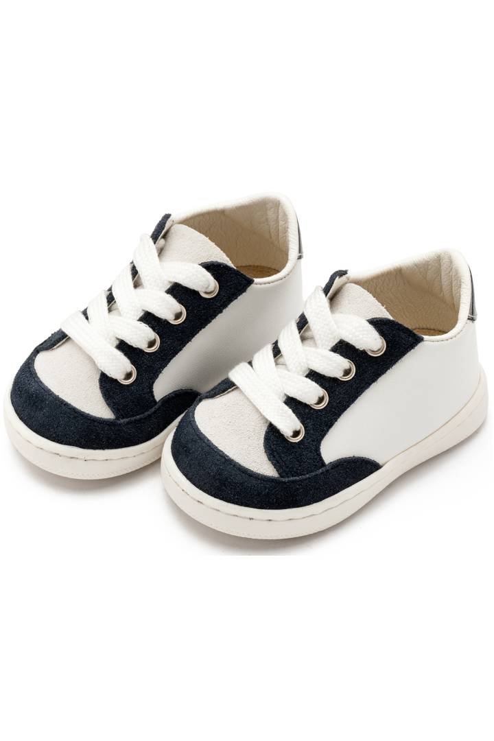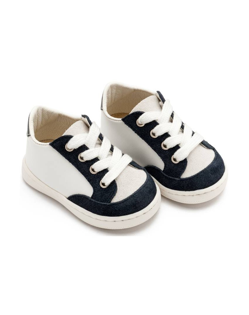 Δερμάτινο βαπτιστικό sneaker Babywalker. Δίχρωμο μπλε-λευκό δετό.
