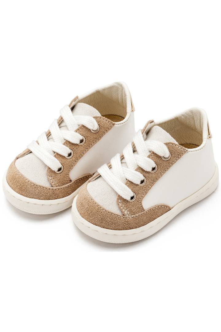 Βαπτιστικό δίχρωμο sneaker Babywalker δετό σε μπεζ χρώμα. 'Ανετο και κομψό για την πιο ξεχωριστή μέρα του μικρού σας.