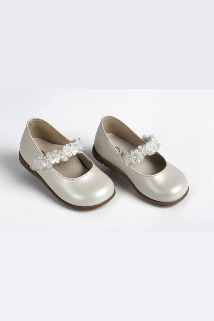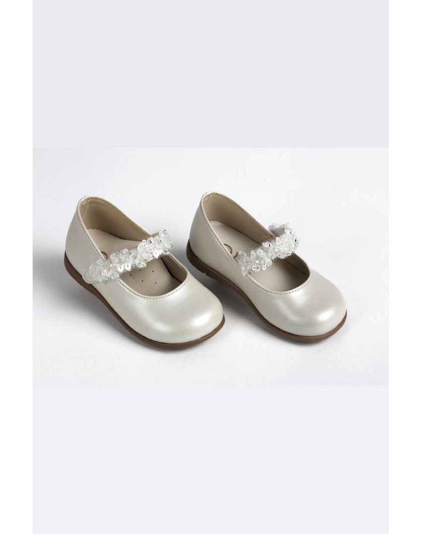 Βαπτιστικό παπούτσι μπαλαρίνα σε εκρού τεχνόδερμα με διακοσμητική τρέσα Everkid