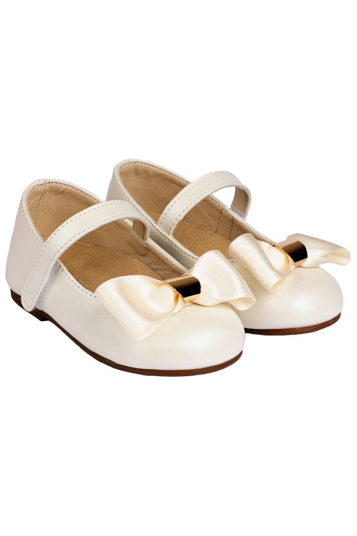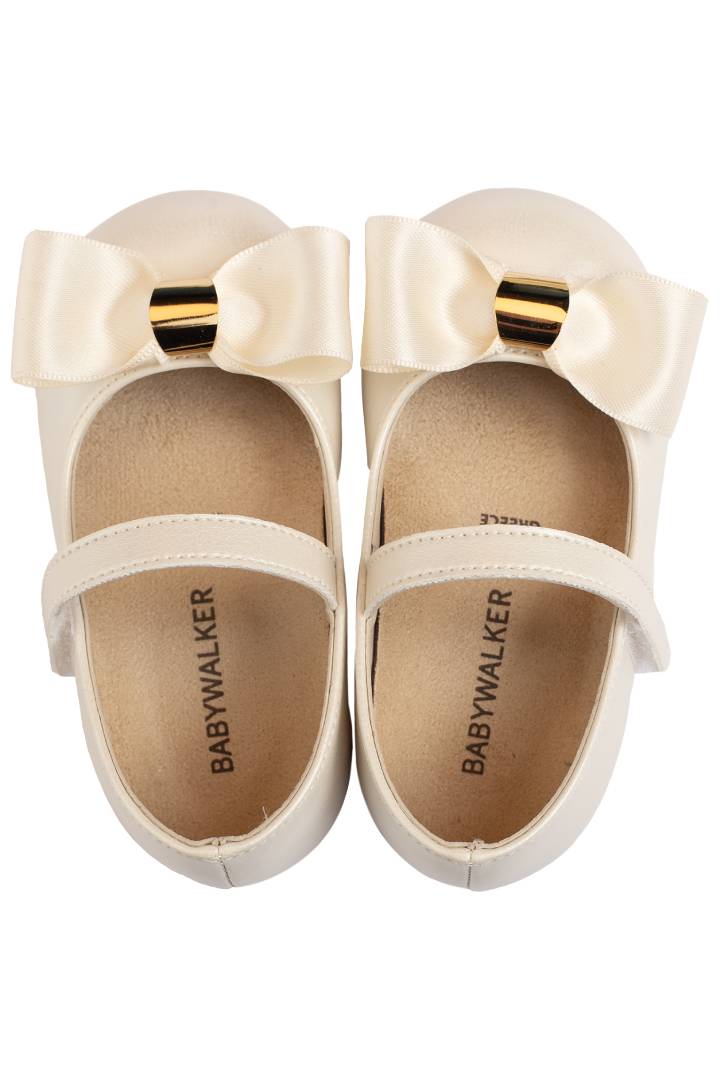 Εκρού βαπτιστικό γοβάκι Babywalker με σατέν φιόγκο και χρυσή λεπτομέρεια. Ιδανικό για μια εμφάνιση με στύλ και κομψότητα.