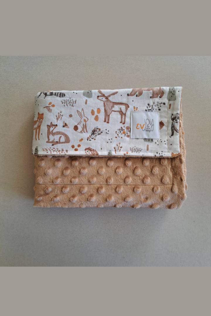 Χειροποίητη κουβερτούλα αγκαλιάς διπλής όψεως 100cm*70cm, βελούδο minky και βαμβακερή ποπλίνα.