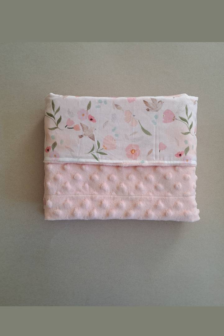 Χειροποίητη κουβερτούλα αγκαλιάς διπλής όψεως 100cm*70cm, βελούδο minky και βαμβακερή ποπλίνα.