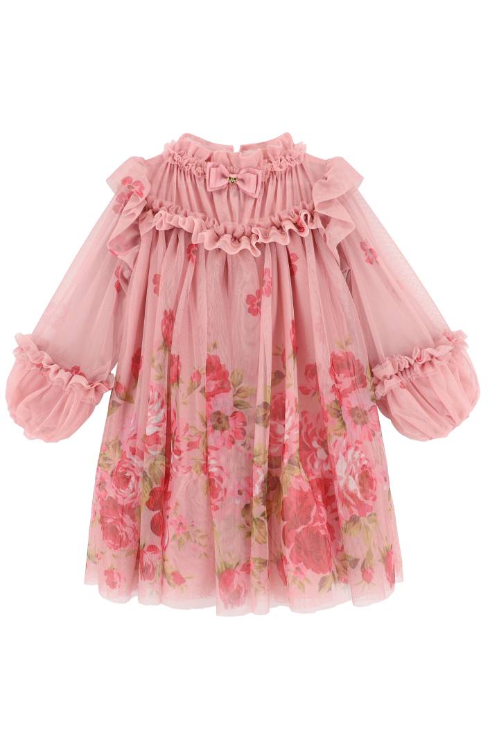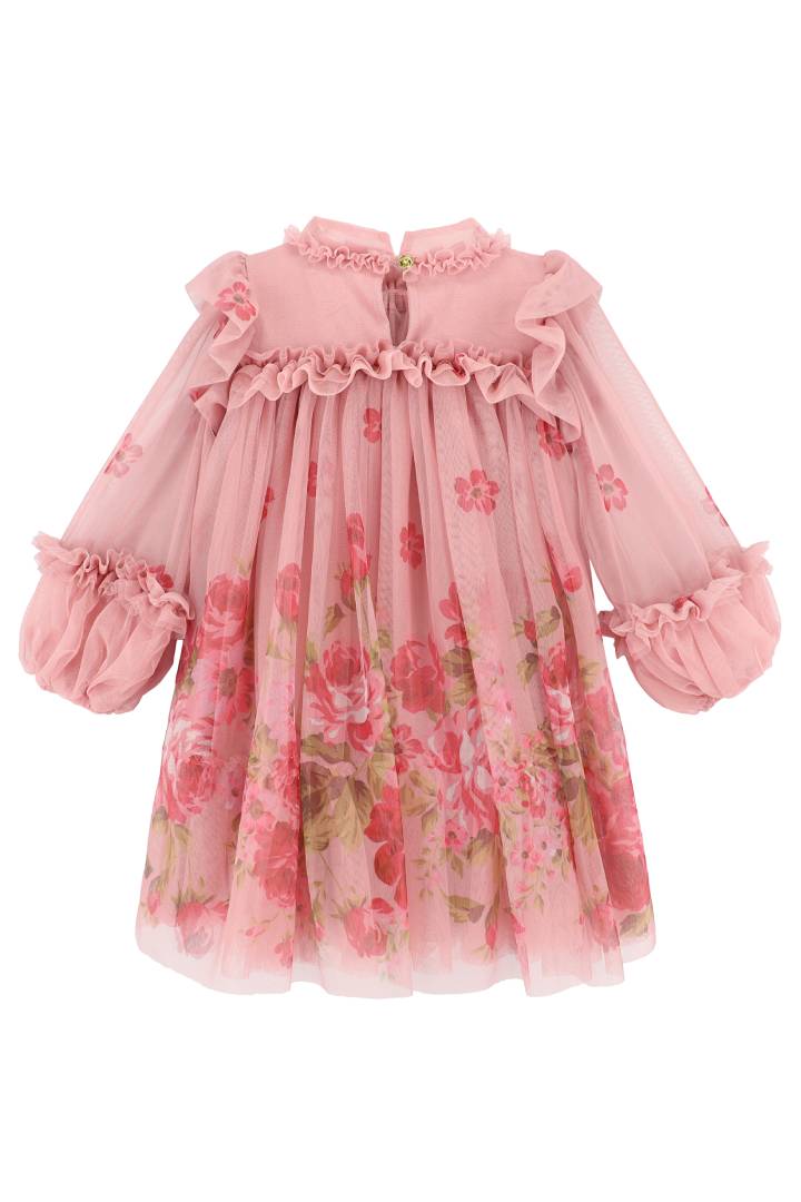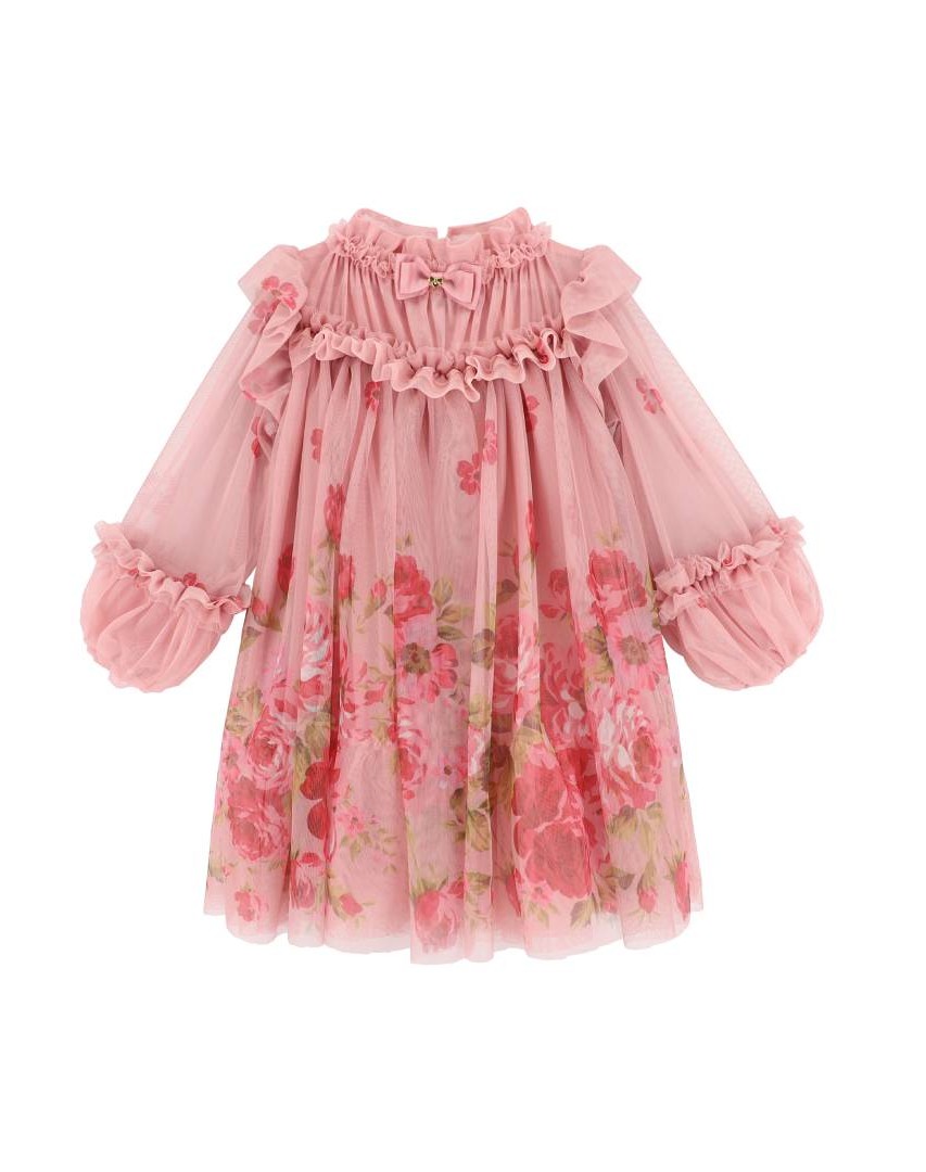 Φόρεμα ροζ με τριαντάφυλλα και μανίκια με βολάν Angel's face.