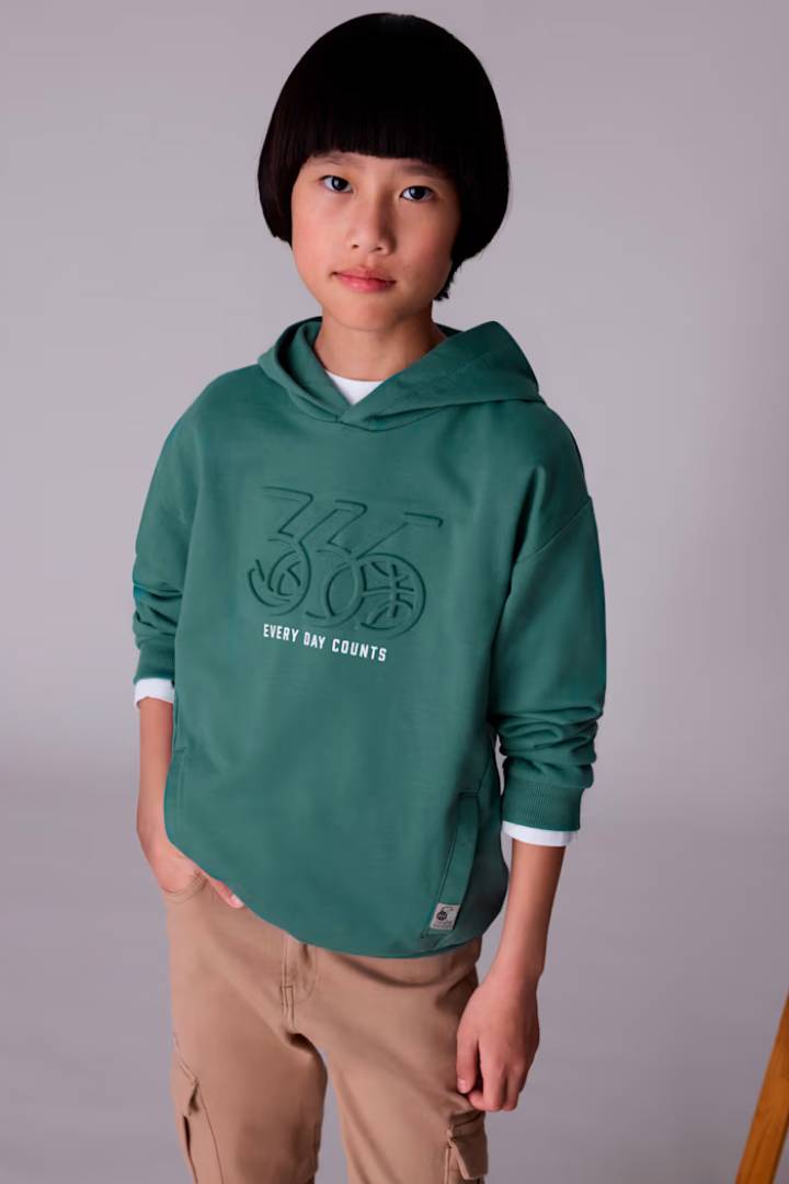 Φούτερ μακρυμάνικο για αγόρι. Γιακάς με κουκούλα. Λειτουργική τσέπη μπροστά. Διακοσμητικές λεπτομέρειες: ανάγλυφες λεπτομέρειες (embossed), Μεταξοτυπία.