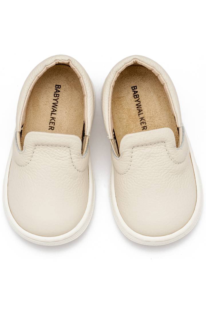 Δερμάτινο βαπτιστικό loafer Babywalker σε ιβουάρ απόχρωση, με λάστιχο στο πλάι για άνετη εφαρμογή. Ένα παπούτσι που συνδυάζει την άνεση και το στυλ.