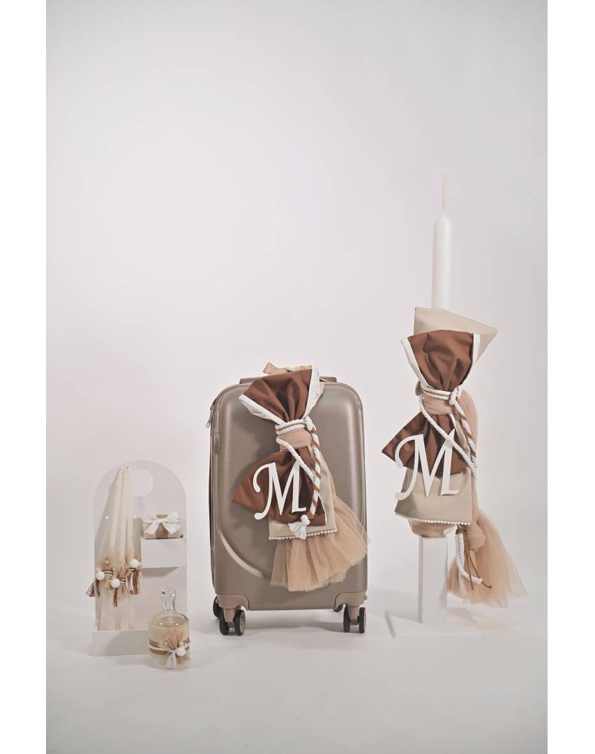 Λαμπάδα Βάπτισης για αγόρι σε καφέ αποχρώσεις και μονόγραμμα
