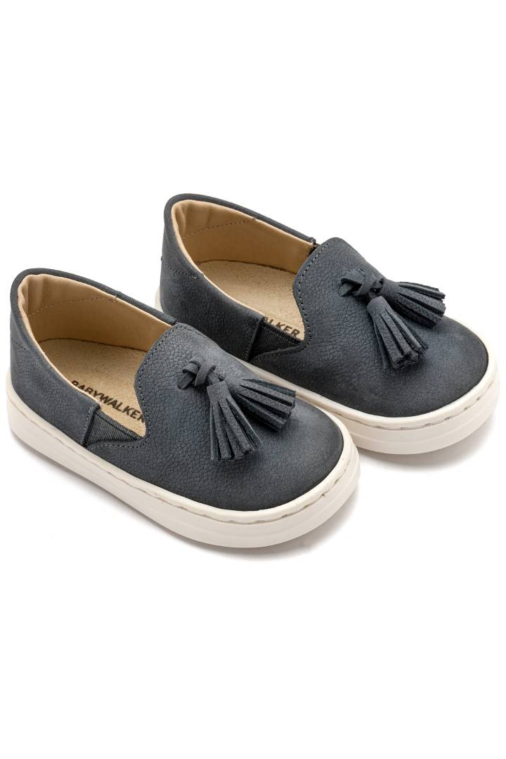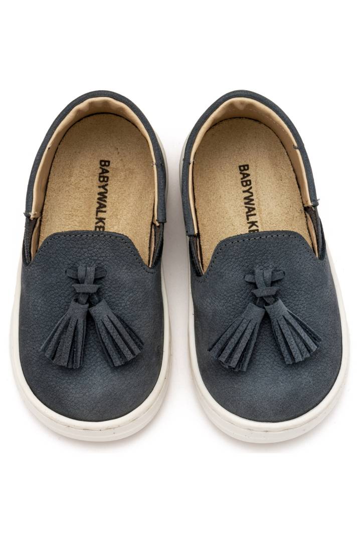 Βαπτιστικό μοκασίνι Babywalker με φουντάκι σε απόχρωση μπλε ρουα. Συνδυάζει το κλασσικό με την κομψότητα για μια εμφάνιση μοναδική.