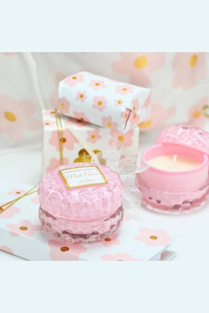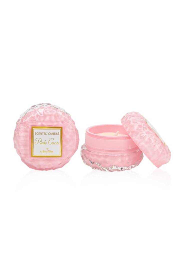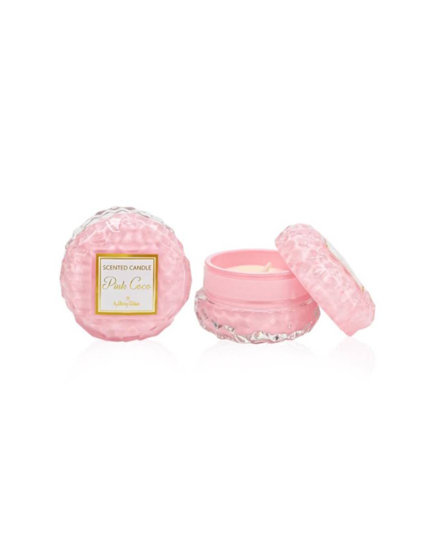 Ανακαλύψτε το Pink Coco, το στρογγυλό γυάλινο κερί που συνδυάζει την εκλεπτυσμένη αισθητική με ένα ζεστό και μοναδικό άρωμα.