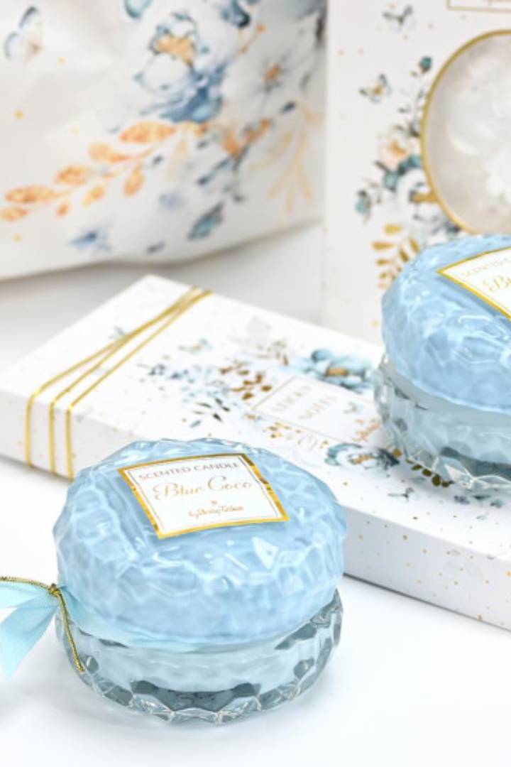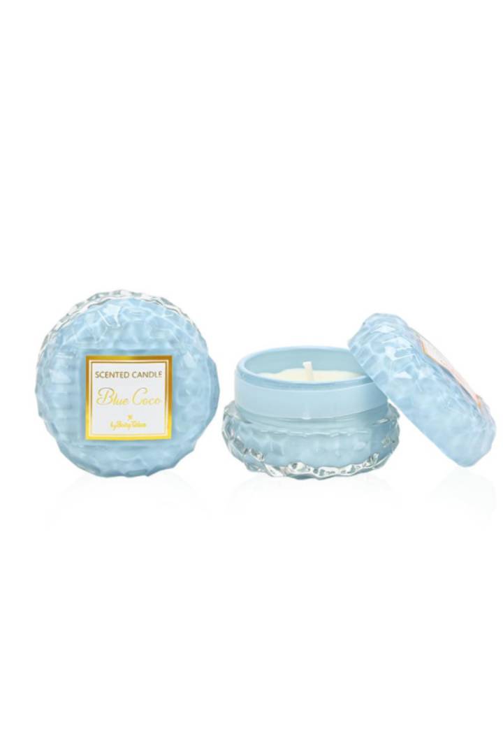 Ανακαλύψτε το Blue Coco, το στρογγυλό γυάλινο κερί που συνδυάζει την εκλεπτυσμένη αισθητική με ένα ζεστό και μοναδικό άρωμα.