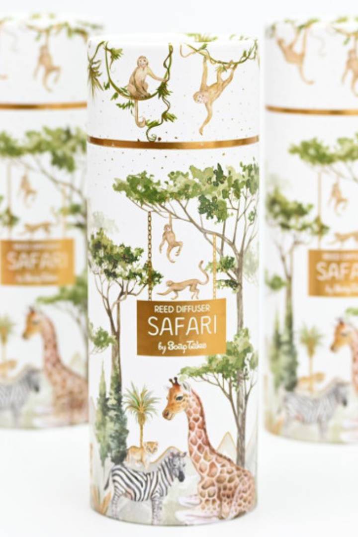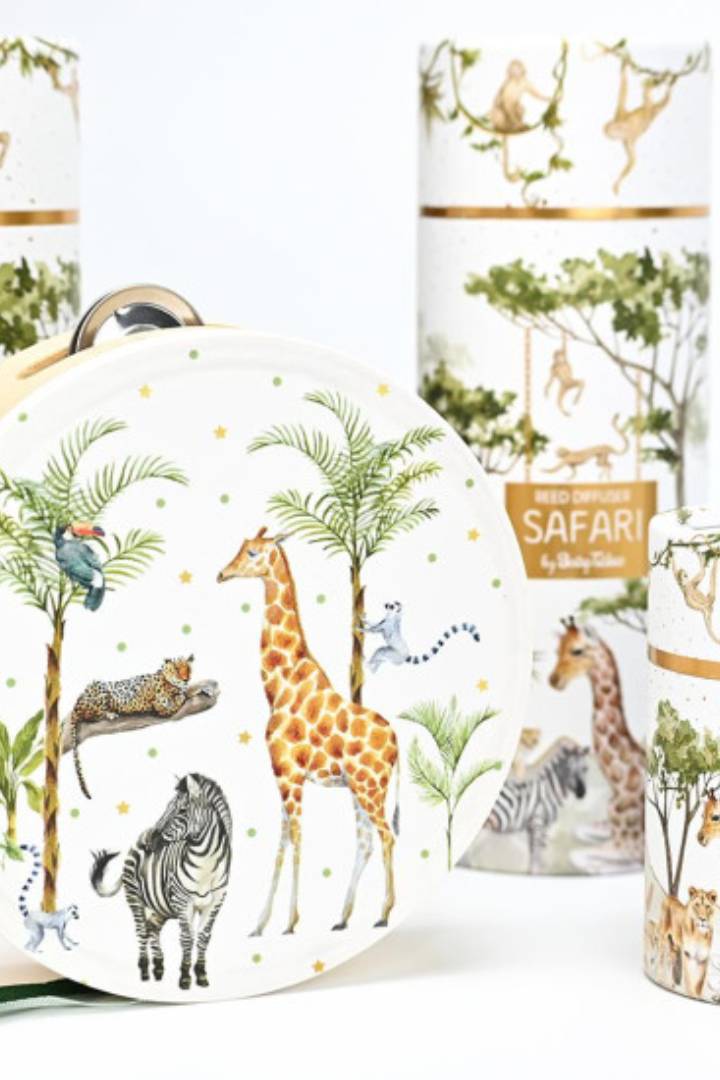 Χαρίστε μια γλυκιά και τρυφερή αίσθηση με το αρωματικό χώρου με θέμα το  safari και άρωμα Baby Musk, ιδανικό για ξεχωριστές στιγμές.
