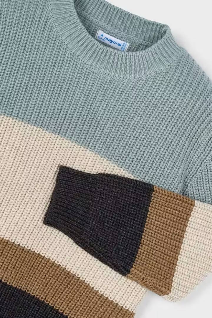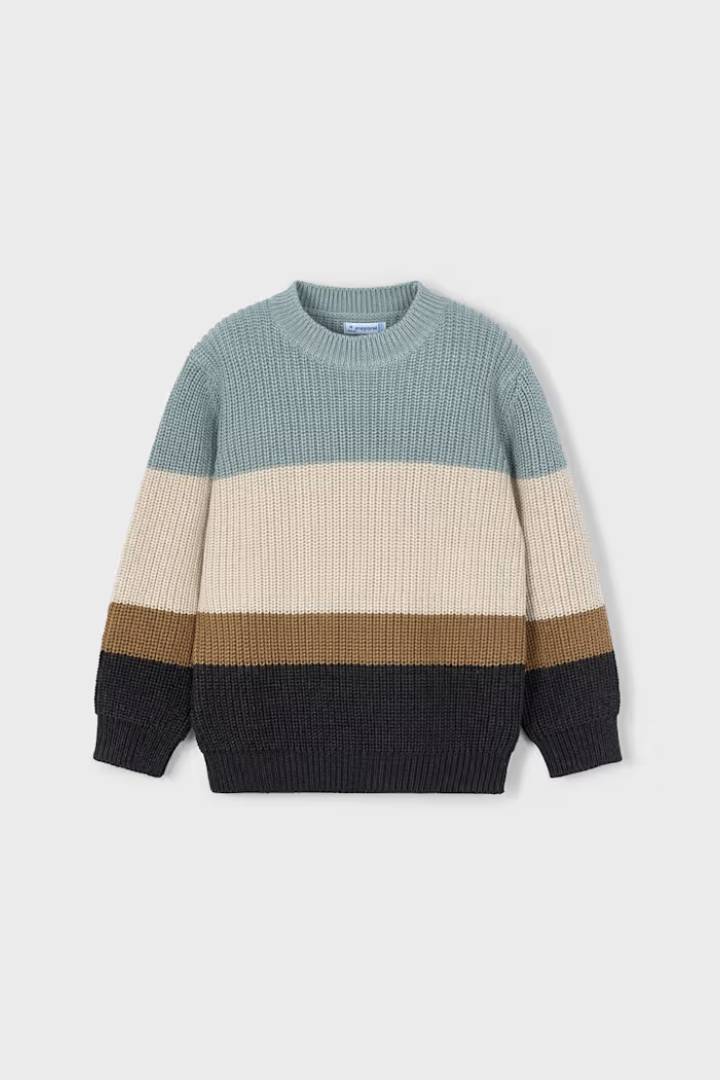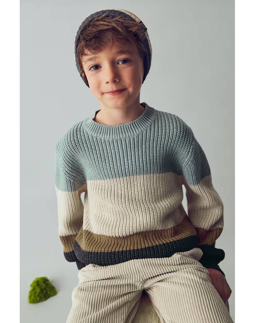 Ζέρσεϋ μακρυμάνικο για αγόρι. Στρογγυλεμένος γιακάς. Σύνθεση από διαφορετικά υφάσματα για ένα μοναδικό και ξεχωριστό σχέδιο. Διακοσμητικές λεπτομέρειες: λεπτομέρειες καναλέ.