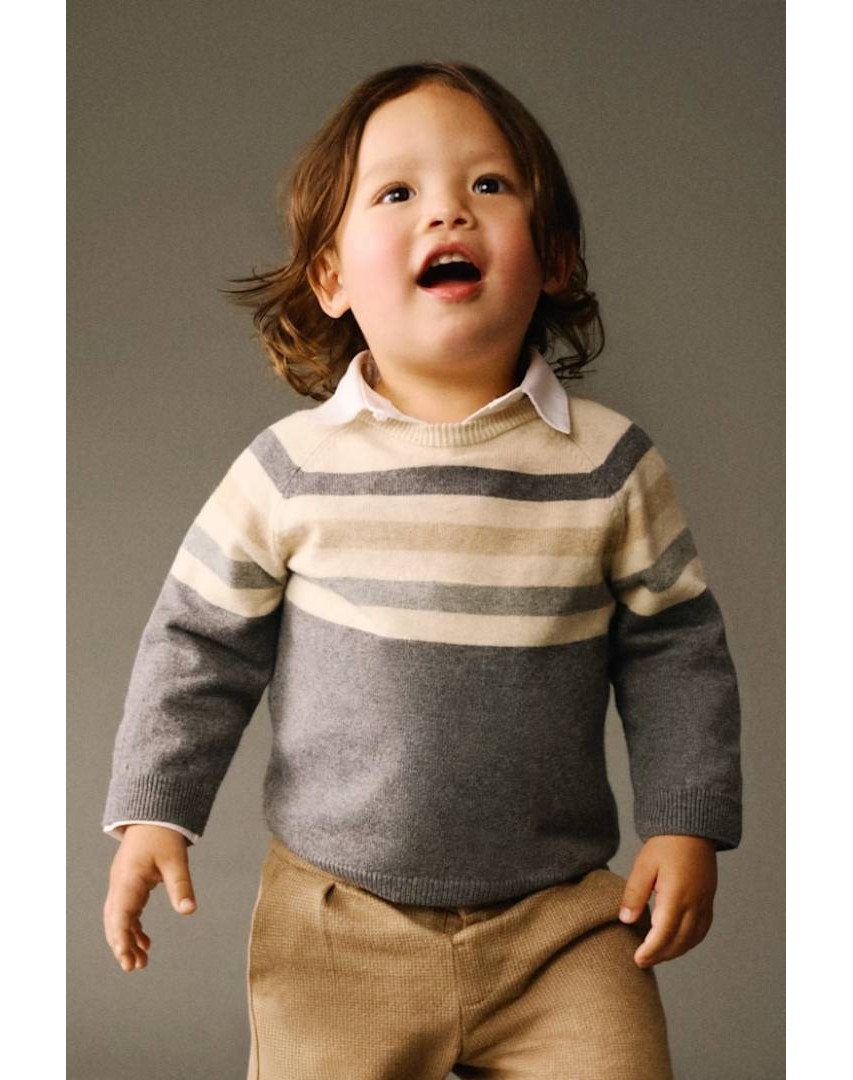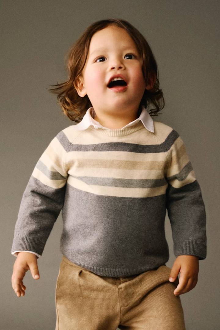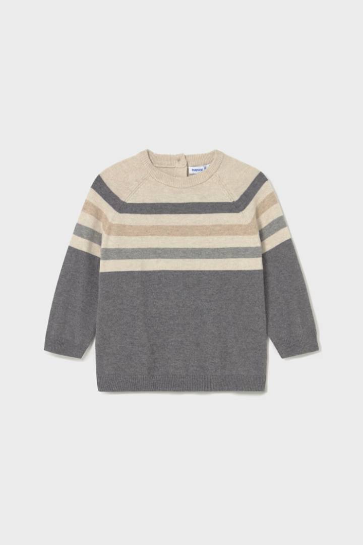 Περιέχει ανακυκλωμένο πολυαμίδιο. Ζέρσεϋ μακρυμάνικο για μωρό. Στρογγυλεμένος γιακάς. Με κουμπιά στον γιακά για να φοριέται πιο εύκολα. Σχέδιο ριγέ.