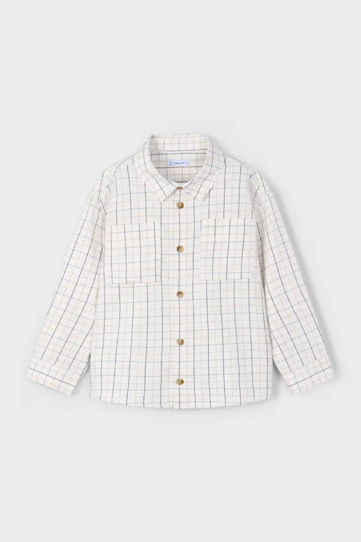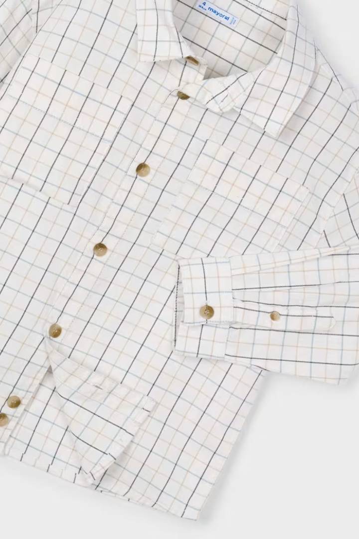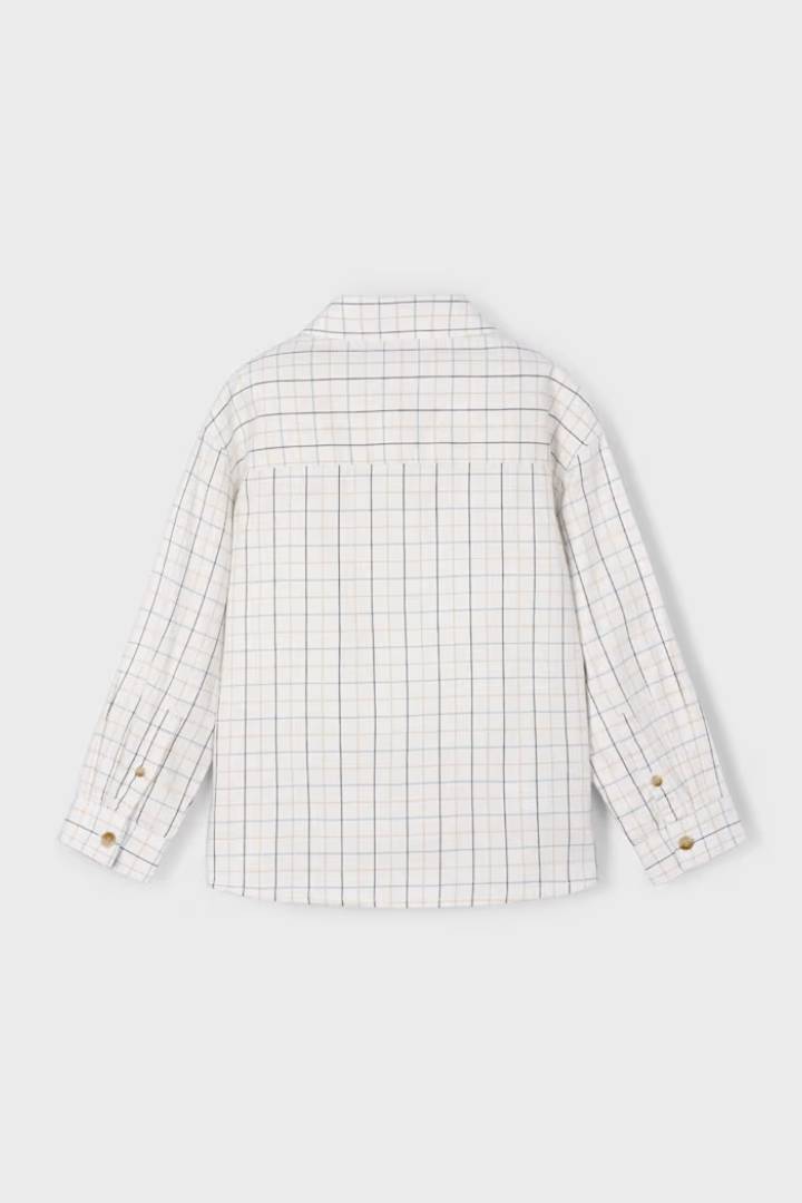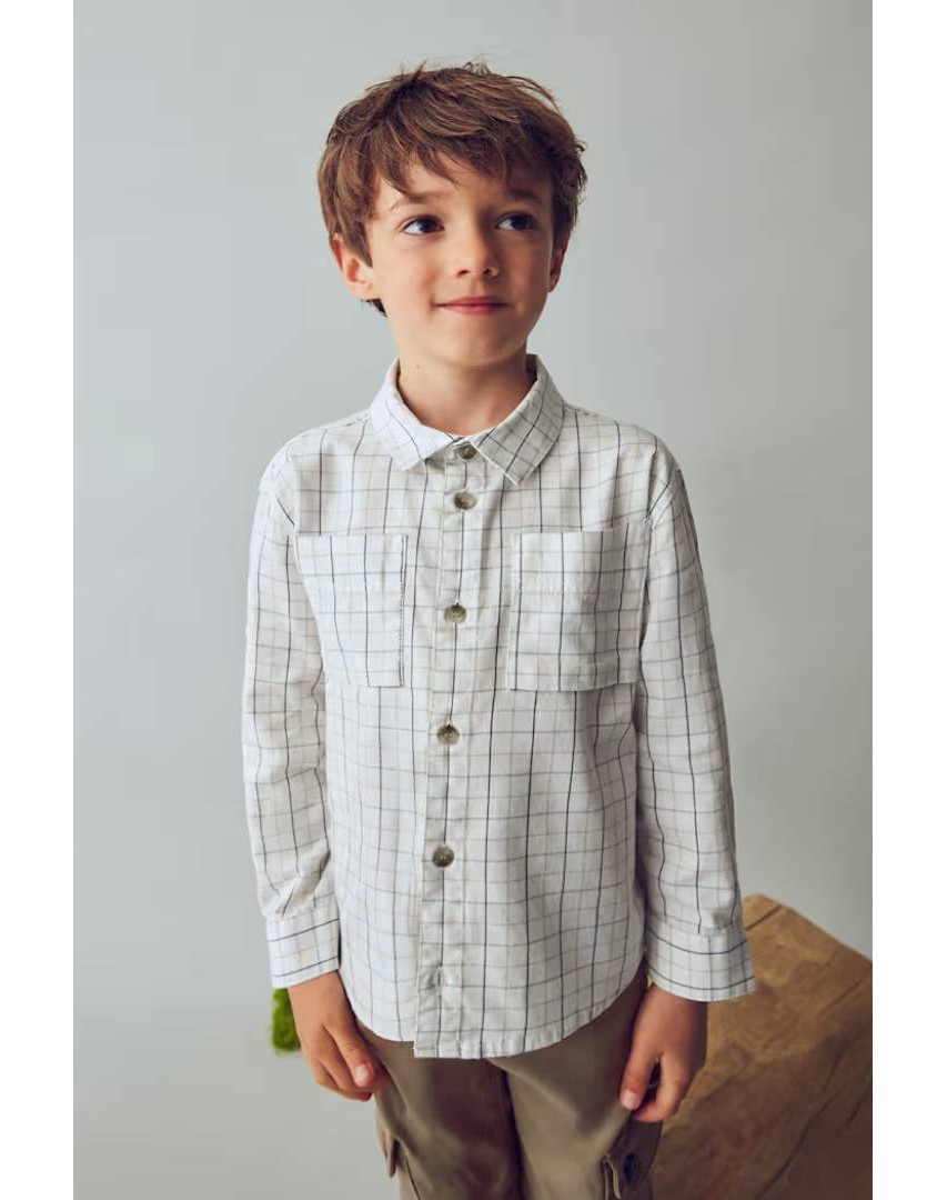 Πουκάμισο μακρυμάνικο για αγόρι. Γιακάς πουκαμίσου. Με κουμπιά μπροστά. Απαλό ύφασμα βιέλα. Bolsillos delanteros. Σχέδιο καρό.
