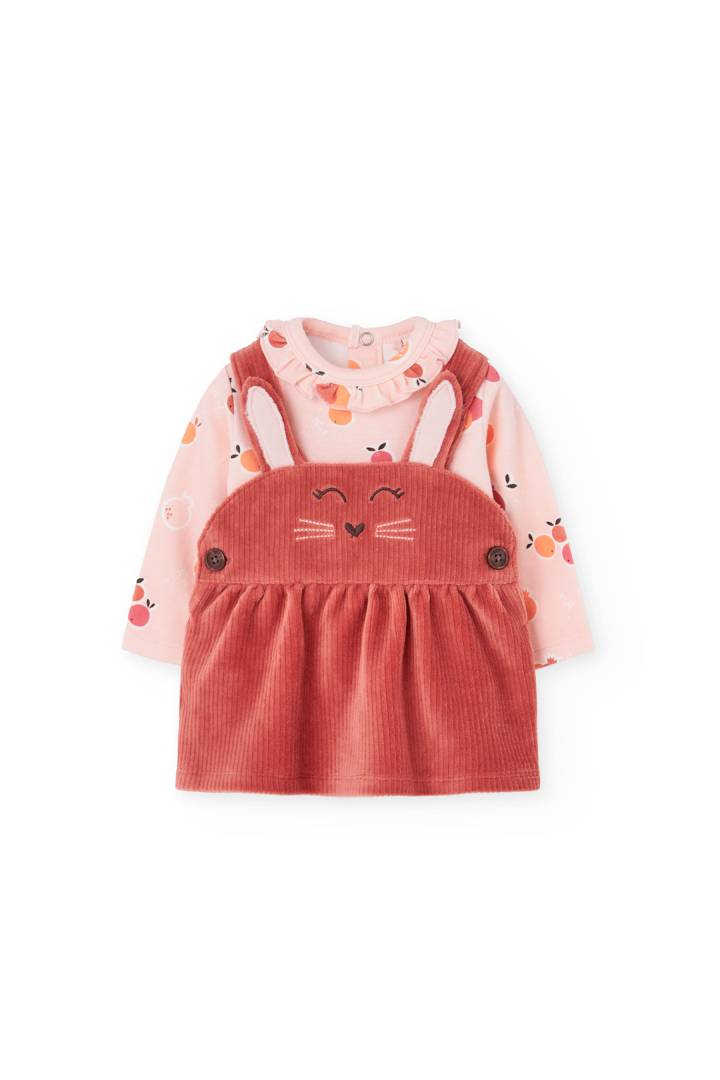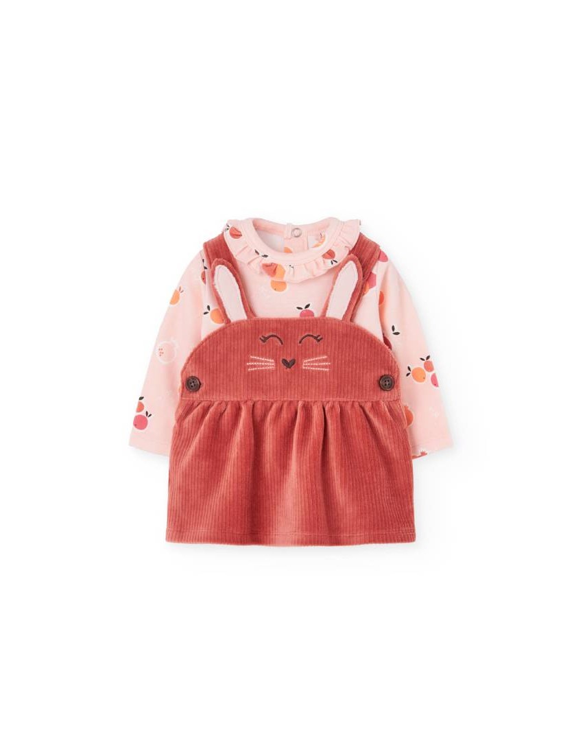 Βρεφικό σετ σαλοπέτα με σχέδιο λαγουδάκι σε κεραμυδί απόχρωση Boboli.