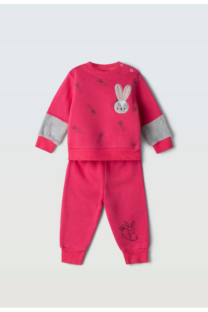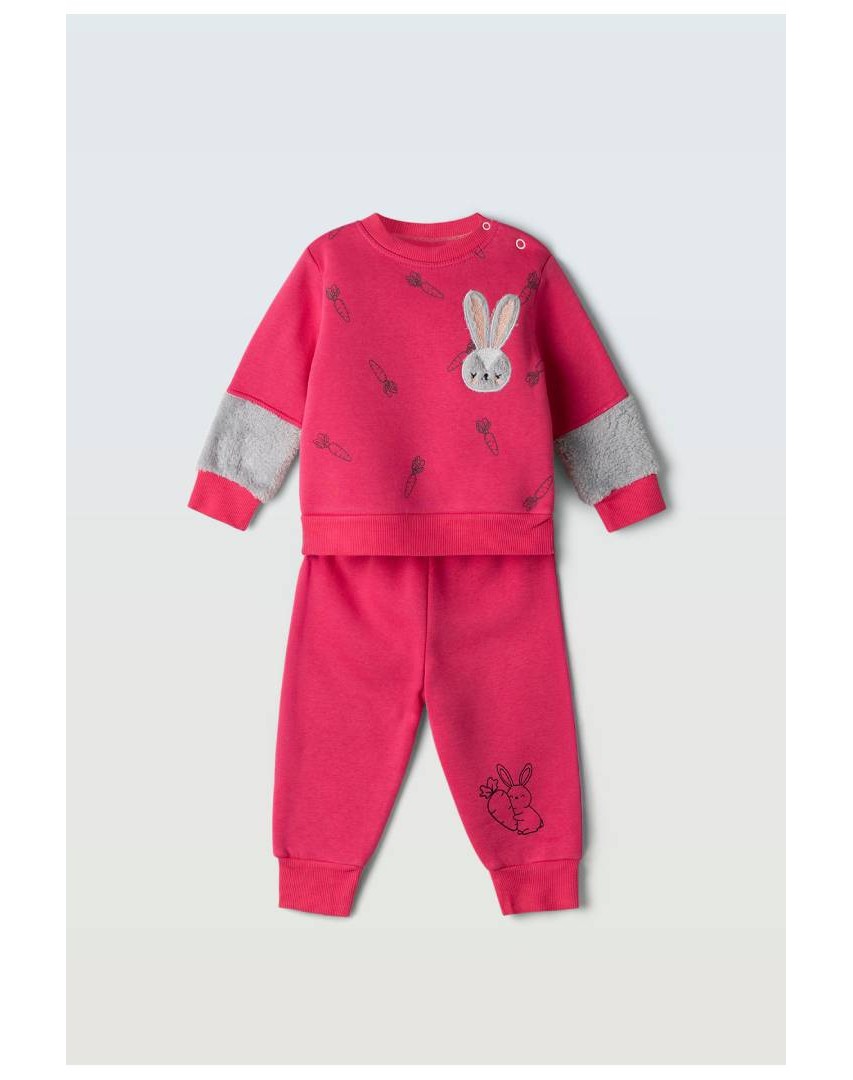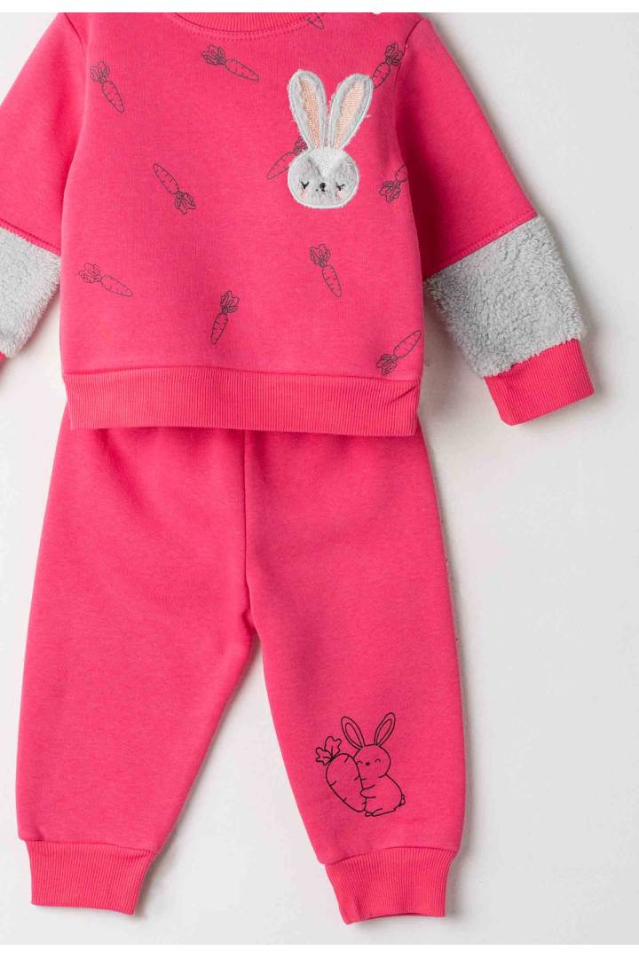 Σετ βρεφική φόρμα Εβίτα φούξια με λαγουδάκι και γκρι λεπτομέρεια στα μανίκια.