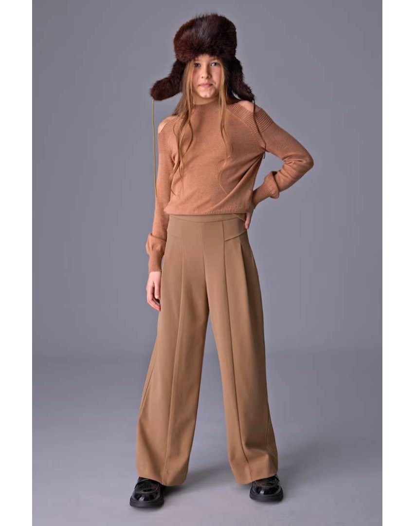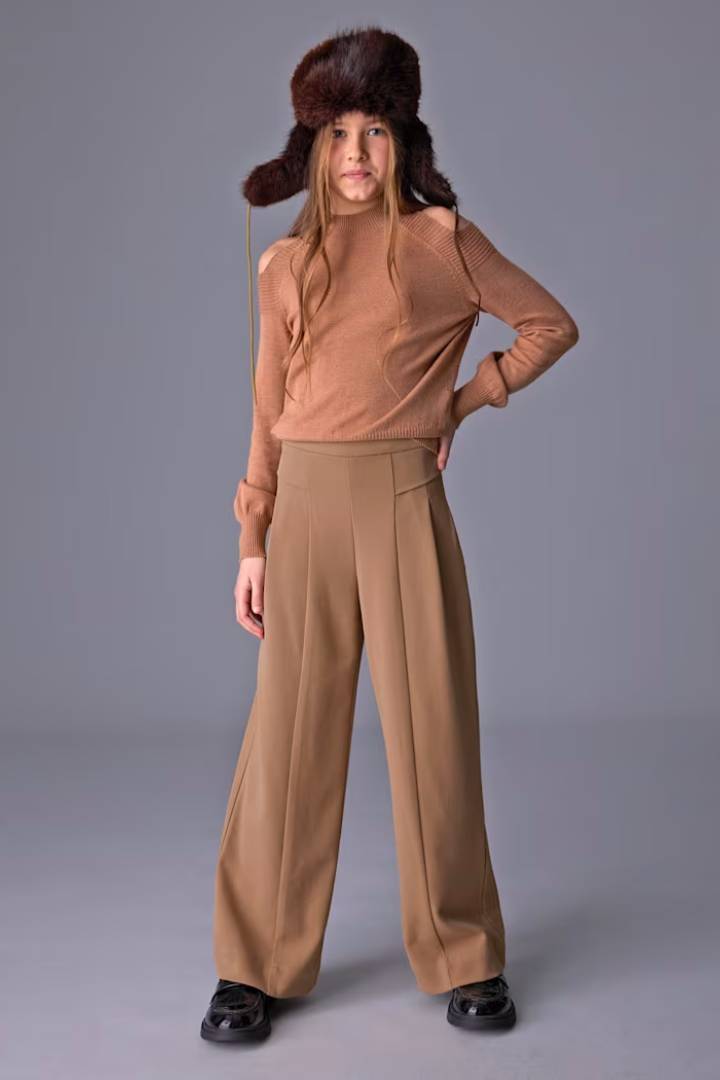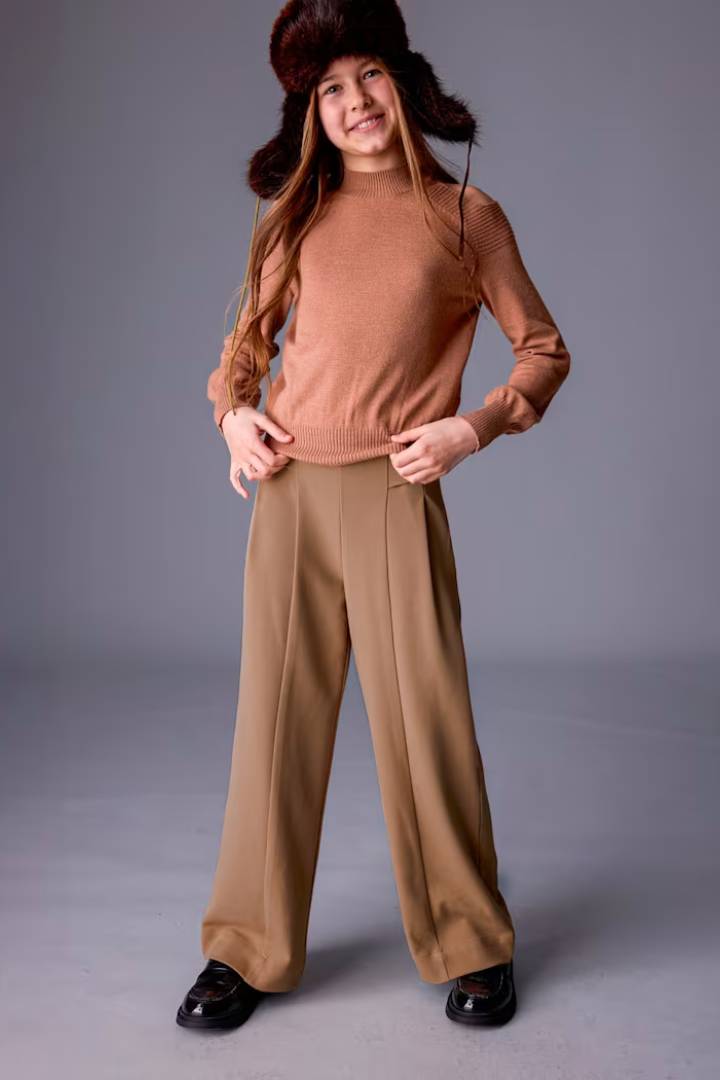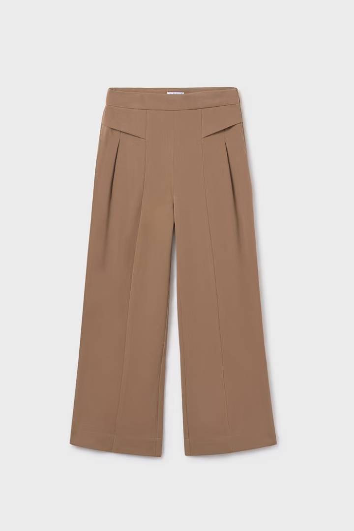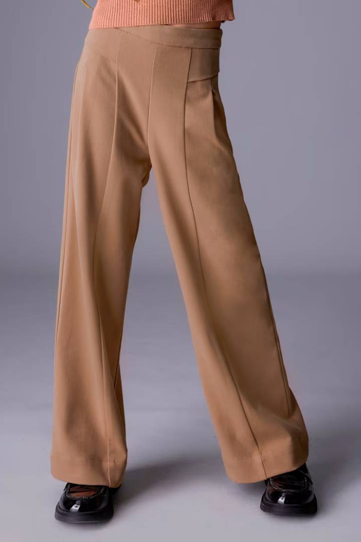 Παντελόνι wide leg σε χαλαρή γραμμή, με φαρδιά μπατζάκια που φαρδαίνουν σταδιακά από τη μέση έως το τελείωμα. Κλείνει με κρυφό φερμουάρ στο πλάι. Ρυθμιζόμενο λάστιχο στη μέση για καλύτερη εφαρμογή. Σχέδιο με πτυχώσεις.