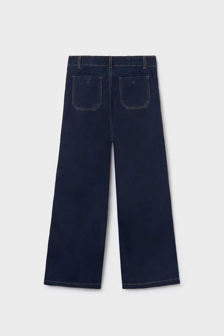 Παντελόνι για κορίτσι στυλ καμπάνα, φαρδύ στο κάτω μέρος. Ρυθμιζόμενο λάστιχο στη μέση για καλύτερη εφαρμογή. Άνετο τζιν ύφασμα με πετροπλυμένο εφέ για καθημερινό look. Λειτουργικές τσέπες μπροστά. Λειτουργικές τσέπες πίσω.