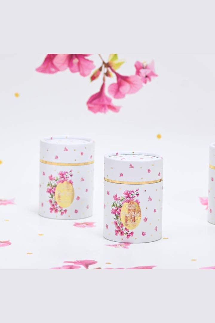 Η συσκευασία του, εμπνευσμένη από τα ζωηρά άνθη της βουκαμβίλιας, σε ροζ αποχρώσεις με χρυσές λεπτομέρειες, αποπνέει μεσογειακή φρεσκάδα και πολυτέλεια.